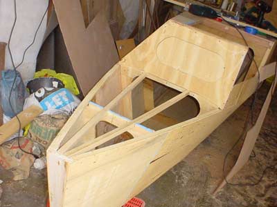 Support structure for the stern deck of the port hull ready to cover with plywood.