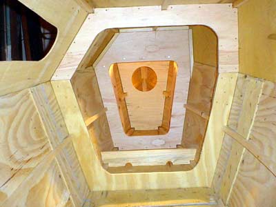 Cabin of the finished starboard hull, in the picture you can see the entrance scuttle.