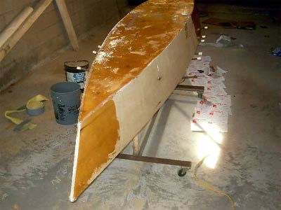laying down the first coat of epoxy, I glassed the bottom and