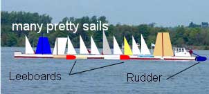 A pivoting lee board or two will be installed on Tims and a rudder will be added to the stern. I anticipate that we'll remove the cabin to allow more sails.