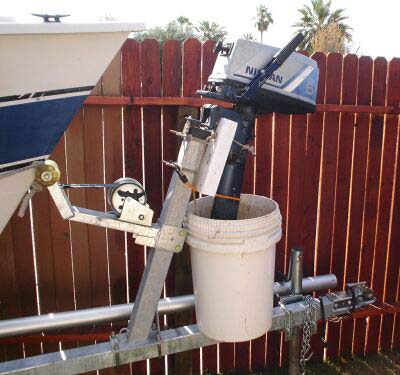My motor had been sitting for a long time and I wanted to test run it to make sure the carb wasn't all gummed up. Scratching my head, looking for some place to hold the motor upright and put a bucket of water underneath. The first thought was to prop something under my existing transom motor mount, but I had seen others with mounts on their winch posts, so I decided to give it a try.