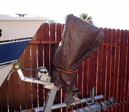Finally I made a cover that fits over the entire motor to protect it from UV. I am not worried about the body of the motor, but the engine cover is made from plastic and those take a beating from the sun. Hopefully it will also keep the wasps from crawling in the motor housing drain and making a nest in the engine area.