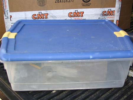 This is the large plastic container I usd to derust the pick head.