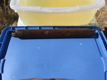 First you will need a tub made of rubber or plastic. It must be at least twice the size of what you want the rust off and have room for a sacrificial piece of steel. If your rusted junk is big you will need a big plastic pale or storage box that is leak proof. If it is small then just a small dish pan will work as long as all of the metal is submerged. That is important the solution must cover the rust part completely. I didn’t know this but many old rifles found on civil war battle fields have been made to look very nice after being rusted for a hundred years with this process. My friend told me he fixed his steel propeller mount and rudder with the same method and had them plated so they would last longer than just painting them this time when he puts them back on his boat. He did not need to buy new pieces of metal for his boat. He removed all the rust and had the items plated so they can withstand the very thing that almost ate them away.