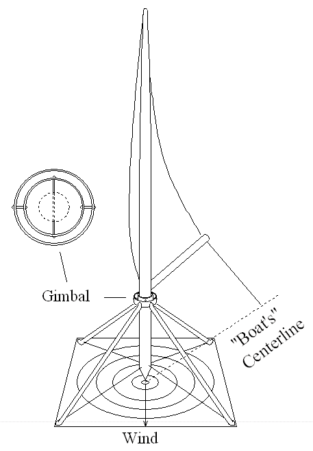 The base, stanchions and gimble all seem straightforward to me. What remain are the grid (probably a small area of concentric 1mm gradations, with angle reference lines overlaid?), categories and report formats, and suppliers of shock absorbers (shock cord, surgical tubing, springs or fish scales? ...something uniform, at any rate), wind direction (tell-tales at masthead? 10m into the wind?) and speed (Speedtech? Edmund Scientific? Radio Shack?). I’d think the whole thing could be built and equipped for less than $150, making it widely accessible.