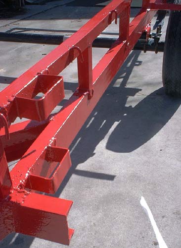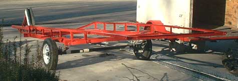But adapting a fishing boat trailer doesn’t always work. Sometimes we build our own boats exactly because we want an uncommon configuration. In my case, it’s the Bolger Light Schooner. It’s 24 feet long but only 500 lbs. Any trailer made for that long a boat has two beefy axles and can carry 7000 lbs. My boat wouldn’t even flex the springs, and the stiff ride would beat the hull to pieces. (Mine’s actually so light that 2000# springs are a bit too stiff.) At the other end of the scale, a trailer made for a 500 lb. boat would never be long enough to put its extreme rear end under my centerboard, much less the motor well. Add to this the fact that many states have a law about how far a boat may overhand the end of the trailer. Wisconsin says 4 feet at most. True, you can build long wooden bunks that are part of the “trailer” to get around this, but this is not structurally sound for more than a few feet.