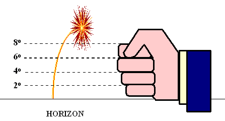 (If you hold your fist at arm’s length, with your thumb on top and the bottom of your fist on the horizon, was the top of the trajectory above or below the top of your fist?)