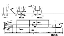 in the stern, a low power dolly, powered by a 2 speed 14volt