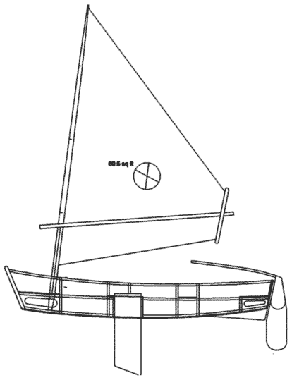 The rig as drawn is somewhat snug, but that's no bad thing for a boat that's unlikely to be used always within sight of a formal sailing club. Any sail would need to be cut with some darts in the corner - there's no better place for detail on how that should be done than Jim Michalak's excellent pages. There's usually a link here https://homepages.apci.net/~michalak/ but if you can't find one, check here https://marina.fortunecity.com/breakwater/274/ . Jim's pages are always worth visiting in any case.