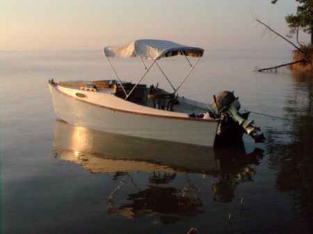Amesbury power dory with a small cuddy added and a new 4 stroke
