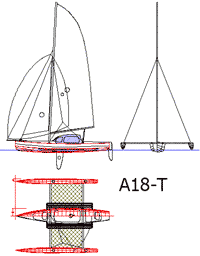 The first boat off the drawing board was the previously published A18, canoe/trimaran.