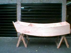 Construction is nail and glue. The boat is 7'6" at the waterline with a beam 0f 48 inches positioned at 60%