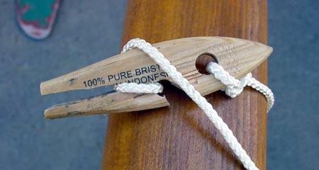 After seeing Rob's article I decided to make some sail gaskets. When I went out into my shop I realized that the handles of the throw away brushes had a very similar profile, so I went to the band saw and wha lah, 30 second sail gasket. So there you have it, cheap, fast, and reliable.