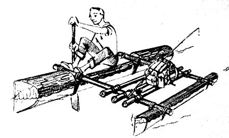 I have heard of people trying this design have found that unless the log is replaced by an inflated rubber pontoon, or similar, or possibly a balsa log (not a common tree in my back yard in Sweden - far from it), you have very, very wet ride.