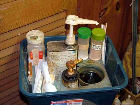To-day, as I was working on one of Joanne’s ‘projects’ - to help the ‘clean’ process - I needed to seal a ‘plank’ of Lauan ply. Because I only needed a small amount, I did my usual - dipped some out of the quart can. As I was doing this it reminded me of a couple of ‘threads’ on the ‘Boatbuilding’ and ‘Woodworking’ newsgroups. One concerned mixing epoxy with the proper Resin/Hardener ratio. The other with waste/shelf-life of varnish & other finishes.