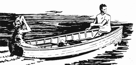 as a pretty little power boat, not a hog waisted scow. Two people are about her maximum load, and one man can have