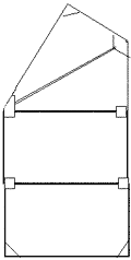 Next cut the third panel across the diagonal (fig 2). Take one of the triangles, turn it over length ways, so that the diagonal cut edges still touch, and sew it back in place along the same edges which you have just cut. This makes a shape like an old style of kite (fig 3).
