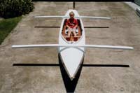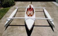 | This craft was designed by Jim Michalak and turned out to be a 16ft. kayak that had been redesigned with outriggers added to become a small trimaran. |