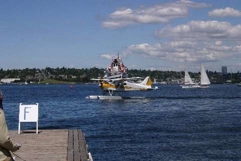 on the lake. Here, one of the planes taxis around