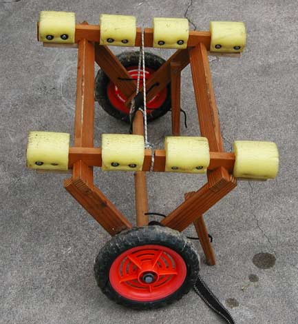 boat on the cart when it is out of the water. The