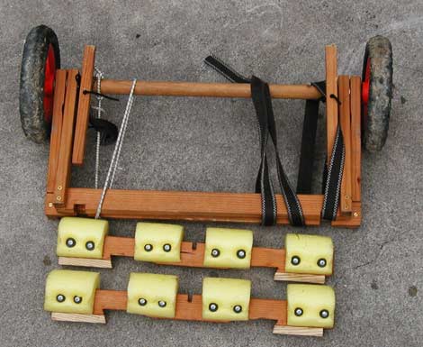 to the other crossbar, and finally back to the axle