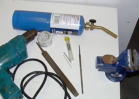 needle, (3) a vise, (4) propane torch, (5) 5/64”