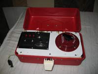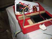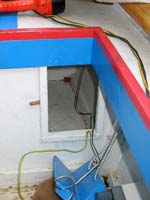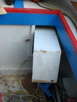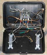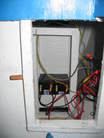 Where I failed, Eric Larson succeeded. He came up with a pretty good el-cheapo switch box. This is a small discount store utility box and common household light switches. He even stuck in a little accessory fuse block. Here it is removed while I was remodeling the hull.