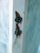 Back on acrylic, drilling presents similar challenges. Too much pressure and it breaks or melts. I bored 1/8” pilot holes, then finished to ¼”. This leaves some space around the #8 machine screws. You don’t want the plastic touching the screws or it will crack at that point. The windows are mounted on a 5/8” overlap and sealed with clear silicone RTV, the final tightening done after the cure. I put the nuts on the outside because I wanted the smoother screw heads inside.