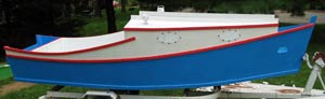 My paint job as some runs, but that’s how it is when little kids are helping. I figure that their memories of helping dad will last a lot longer than any of these boats anyway. My one gripe is that I should have made the wales a little thinner and the coamings quite a bit thinner. Maybe 1.25” for the wales and 1” for the coamings. Less if caprails are used. If I were starting from scratch I’d do the same with the strip that holds the cabin top to the sides, but that is still original in this case. However I would not bother to taper any of these members, though some think that looks really nice. And of course I’d caution about taking too much strength away from a sailboat or a powerboat meant for heavy weather.
