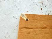 Time will tell how the PL400 holds up, but for now I can tell you that it is harder to get smooth. Sanding creates heat and easily makes it gummy. Ideally you get your final smoothing right when you put it on. This takes a wide putty knife, some mineral spirits, and practice. Chief Redelk down in Louisiana reports that it can be done, but he works with these construction adhesives a whole lot. He suggests that Heavy Duty Liquid Nails is better for this kind of thing. I didn’t try it, but PL400 drags badly. However I was able to sand PL400 a bit by taking light cuts alternating by 90 degrees. Even then the adhesion to the substrate has to be perfect or it will just peel off in rolls like rubber cement. I filled these imperfections with latex caulk.