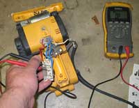 On the grinder it was even simpler. The spade terminals that attached to the switch could attach equally well to the motor terminals! I had to put a foot on this one before plugging it in, though, since its high torque would send it writhing across the floor.
