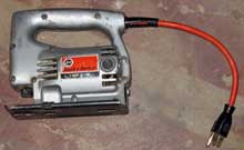 Here’s the old jigsaw with the wires reconnected. I used wire nuts because it was simpler than finding the correct spade connectors. The electrical tape might be overkill, but I certainly don’t want the hot lead vibrating loose inside a tool with a metal case!