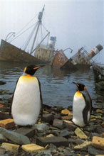 Where Albatross and Dias died! To me there is always a touch of sadness when a boat of any kind sinks at sea or goes down completely or partially but permanently at her moorings, what is left of the vessel then a reminder of once proud days and later abandonment to tides that will eventually break her up.  This wonderful sadness-evoking photograph by Tim Carr of Falmouth punt Curlew fame taken at Grytviken on South Georgia Island in the Antarctic, shows the rusting remains of the 1906 trawler Dias and the 1921 whale catcher Albatross.  One of the very best books I have ever seen, and one of my most prized possessions is Tim and Pauline Carr-s book Antarctic Oasis published by Norton, the photograph usage courtesy of Tim and Pauline Carr, the authors.  In my humble opinion,  if you only bought one more book in your life this is it, for you owe it to yourself to read about and look at truly stunning and rare photographs of the wildlife and the majestic scenery of this still unspoilt part of the planet on which we live.