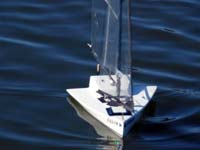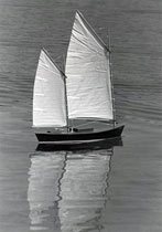 The boat aptly named Duet which is a lovely name, however had one disadvantage  noticed when the boat was first trialled, that being  the windward sail tended to blanket the leeward one.  Alex  worked on correcting that but eventually re-rigged the model as a single-master and a better sailing model resulted.
