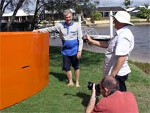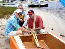 Steve Wagstaff launched his "Two Dogs" another Australian PDRacer. We had a look over his orange boat and noted a number of cool changes from the plans.
