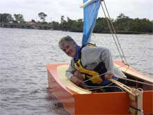 Simply lie down in the water and pull down on the tip of the centreboard - that light hollow timber mast makes all the difference.