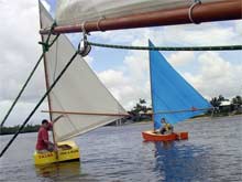 I then took Steve's boat out for a sail after lunch and capsized it while he was sailing the yellow PDR so he could see how easy it is to right.