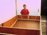 Thanks for great plans. The picture is my youngest child with his partially completed PDRacer. The second picture is of three partially completed hulls in the garage... visible in the back ground is the transom of my Marisol Skiff by Gifford Jackson.