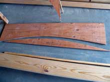 Fortunately, southern yellow pine is anything but scarce. Unfortunately, most of it these days is made into the ubiquitous green treated lumber used for things like decks and fencing, and that stuff is almost never boatbuilding quality. But they also make untreated yellow pine stair tread stock. It’s an inch thick, eleven-plus inches wide, bullnosed along one edge, nearly clear and available in long lengths. If your lumber guy will let you pick through the stacks, you can get some very nice wood for a reasonable price--as of this writing, a 16-footer is less than 60 bucks. That’s what I got for my framing lumber, and ripped to four inches wide on my trusty old Craftsman table saw to use for chine logs and gunwales.