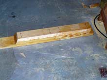 The keelson was another piece that needed to be a little longer than 16 feet. Because of the stress in this area near where the transom attaches, I used a stepped joint with reinforcing blocks, all buttered with epoxy and fortified with glass tape.