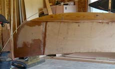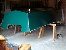 The bottom planks were installed with bronze ring nails and stiffeners were added at the transom end. |