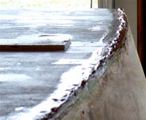 Using a batten I determined the proper shape and spliced a piece on with 4-inch fiberglass tape. I suspected the deeper forefoot would make for more difficult planking, but it would be worth it for aesthetic reasons and probably make for a smoother, more efficient entry (I told myself). |