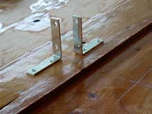 As I mentioned last time, the keelson piece had to be refitted. Hardware-store steel angle brackets were first screwed to the floor.