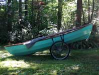 "The Owl and the Pussycat went to sea in a beautiful pea-green boat." It was actually Lake Wilderness, which is a short walk/pull from my home. But this time I had my new boat cart built with the 26" tires stolen off my old garden way cart (probably around 30 years old now). I can't believe how easy it was to pull the boat along on those big wheels (good for 300lbs each), and it became more apparent when I was going down any slight grade. It was pushing me along, and I wished I had brakes on it. I will post a story here soon on how I built the carrier; the company to order them from, and the item #'s of the wheels in their online catalog. They are only $35 each, plus shipping.