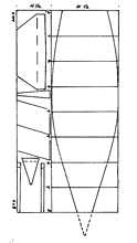 **** the lower edge of this slim panel is equal in length to the upper edge of the lower side panel; the forward upper edge of this panel, the sheer at the bow, extends a bit further because of the rake of the bow