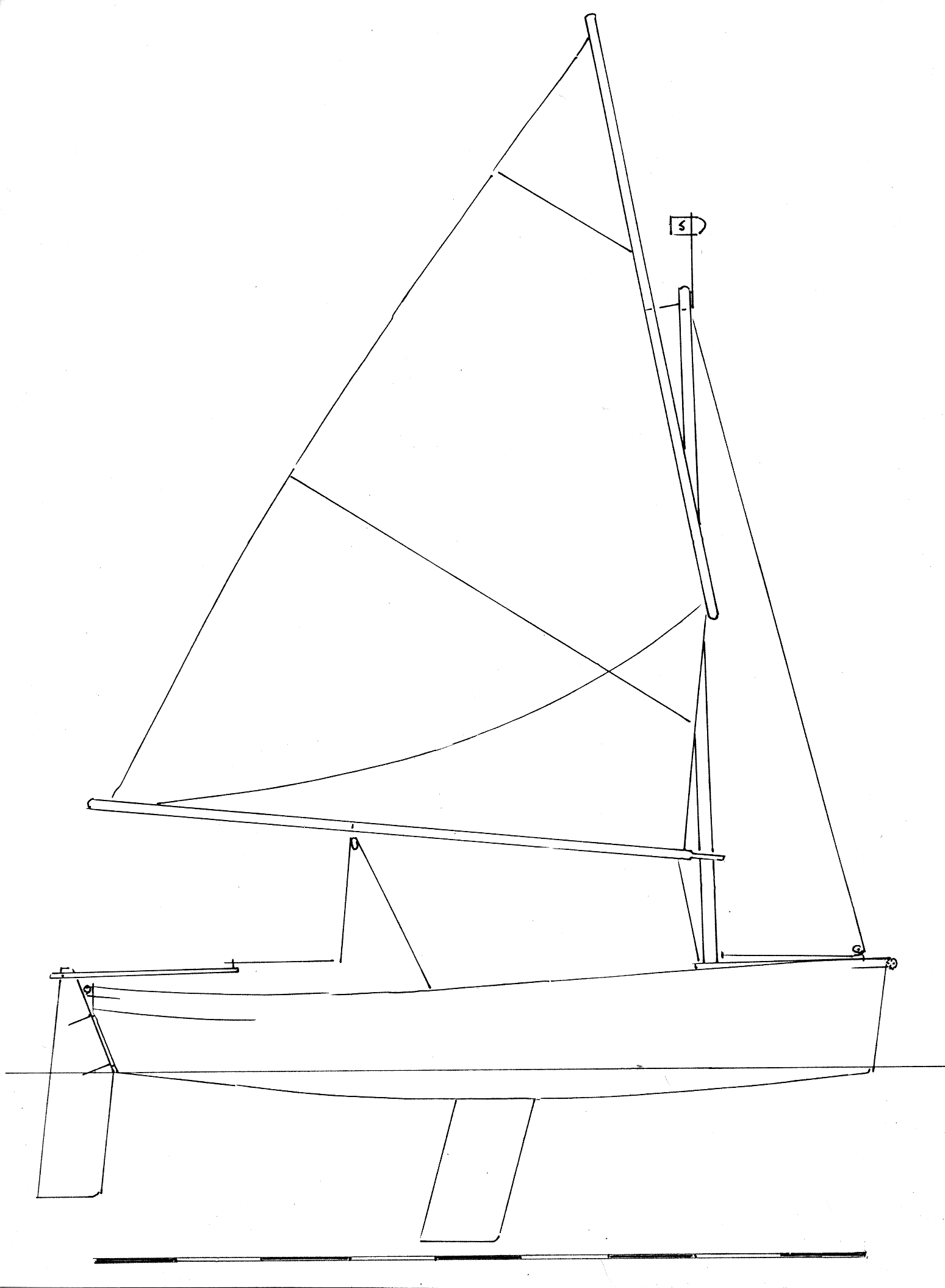 Costs were restricted as my main project (40-footer) produced scrap material, epoxy stuff and paint. Even the Oregon pine spars and oars were leftovers from mast building. Two ply sheets did cost $30, 20’ of polypropylene gunwale fender rope $50, sail cloth $55, wooden strips $40, hardware may be $90, totalling some $265.