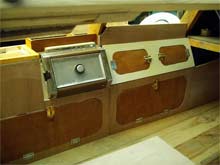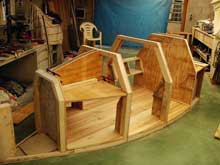 With little else than a few sketchy drawings I started the build and at the beginning things seemed to go smoothly because you’re going from nothing to something. Soon all the bulkheads (4) where in place and I started to layout and build the lockers. Later in the build, when the hull panels where attached, I regretted that I didn’t do more work on the inside when there was ample room to get in and out of the cockpit without doing some real climbing.