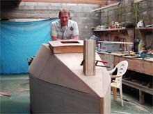 After some “fiddling” I decided that the best choice would be to actually build the boat around me and not the other way round, build the boat according certain parameters and see if you can fit in it and/or adapt your “lifestyle” to it. Another important factor to decide was: what concept would be used, the “Tinkerbelle” way with a small cabin and a rather large cockpit or the modern ”life boat” with an all enclosed cabin and no cockpit. I opted for the second albeit a little modified. A deck at the stern, how small it would be, was a necessity for me and so a rather unusual shape was created.
