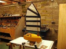 The sail rig was something that was decided upon rather quickly. I needed a rig that was easy to handle and if possible, easy to repair. A few sheets at the most to set and trim the sail, and easy to reef. The Chinese junk sail offered most of these requirements and so I opted for a junk sail for which the basic outline was kindly provided by John Tompkins of Great Britain, thanks John!!