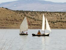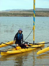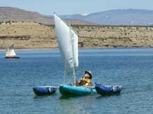 | I'm not sure if I'll bring the pickle to Lake Powell. It's not ment to carry much gear. If Wil was a bit more proficient at sailing, we might try it. He had his first sail, at the helm himself, with a bit of instruction from me. I think he's hooked. The boat is very forgiving. |